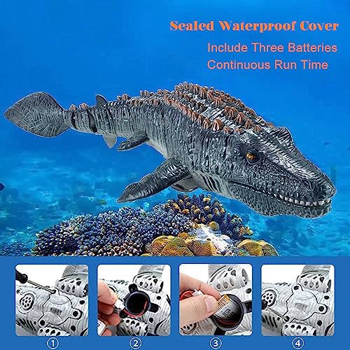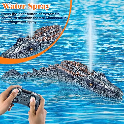 OBEST 2.4GHz Bateaux Telecommander RC Mosasaure pour Enfant, Bateau Requin Jouet Piscine et Lac Jouets Aquatiques,Bateau de Dinosaure Electrique Mosasaure pour Garçon Cadeaux de Noël et D'anniversaire