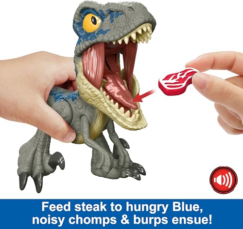 Velociraptor Blue Mega Roar Jurassic World Un dinosaure interactif qui rugit, grince et roque ! Avantages clés : Sons réalistes et impressionnants : rugissements féroces, grincements et rots qui plongent votre enfant dans l'univers de Jurassic World. Mâchoire articul...