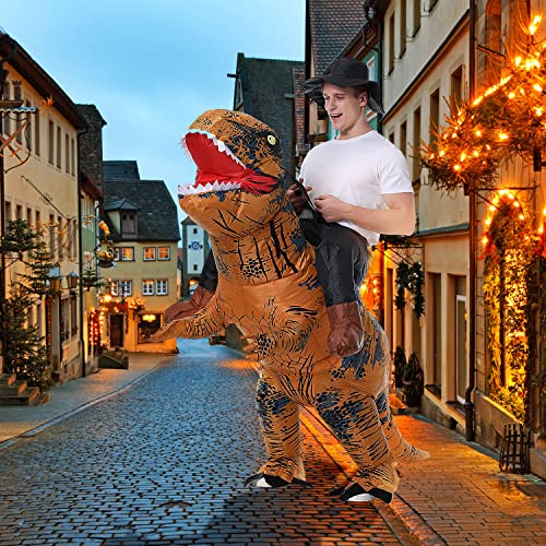 XAMOFAN Costume T rex Deguisement Gonflable Dinosaure Adulte Costume Dinosaure Divertisseur Gonflable Deguisement (Brown)
