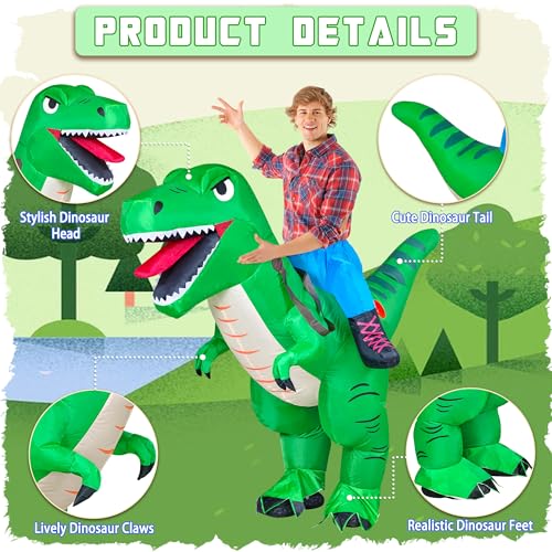 Costume T-Rex Gonflable pour Adulte Transformez-vous rapidement en un dinosaur rigolo et impressionnant grâce à ce costume T-Rex gonflable vert. Léger, confortable et facile à porter, il convient parfaitement à toutes vos fêtes costumées. Contenu du produit : 1 costume de...